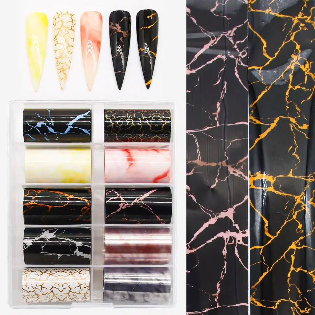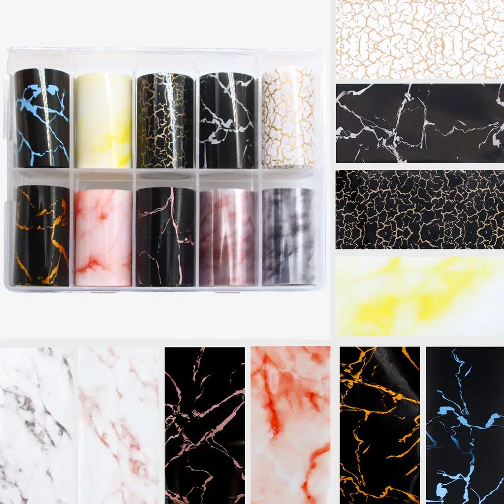 Mermer Granit Desenli Tırnak Transfer Folyo Seti (10 Adet x 1 Metre) WNF-130