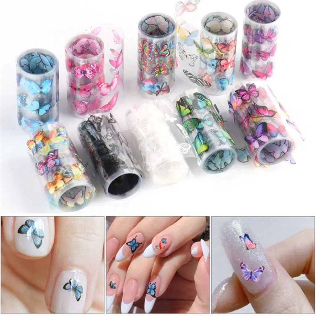 Kelebek Desenli Tırnak Transfer Folyo Seti (10 Adet x 1 Metre) WNFHD-06