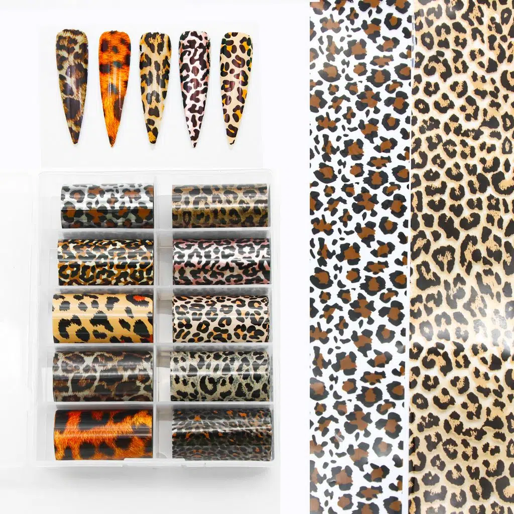 Leopar Desenli Tırnak Transfer Folyo Seti (10 Adet x 1 Metre) WNF-265