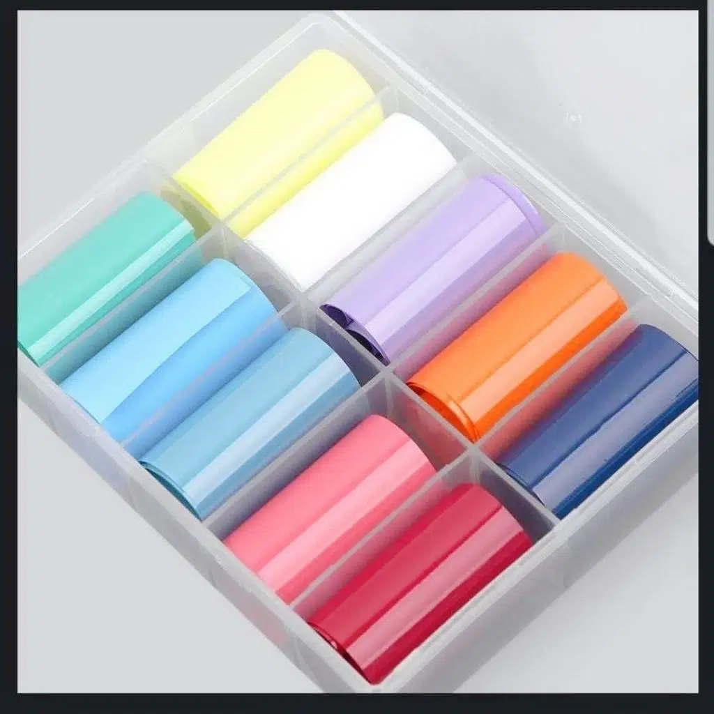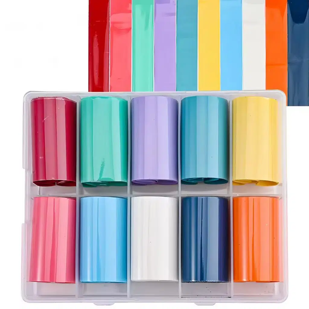 Pastel Düz Renk Tırnak Transfer Folyo Seti (10 Adet x 1 Metre) WNF-229