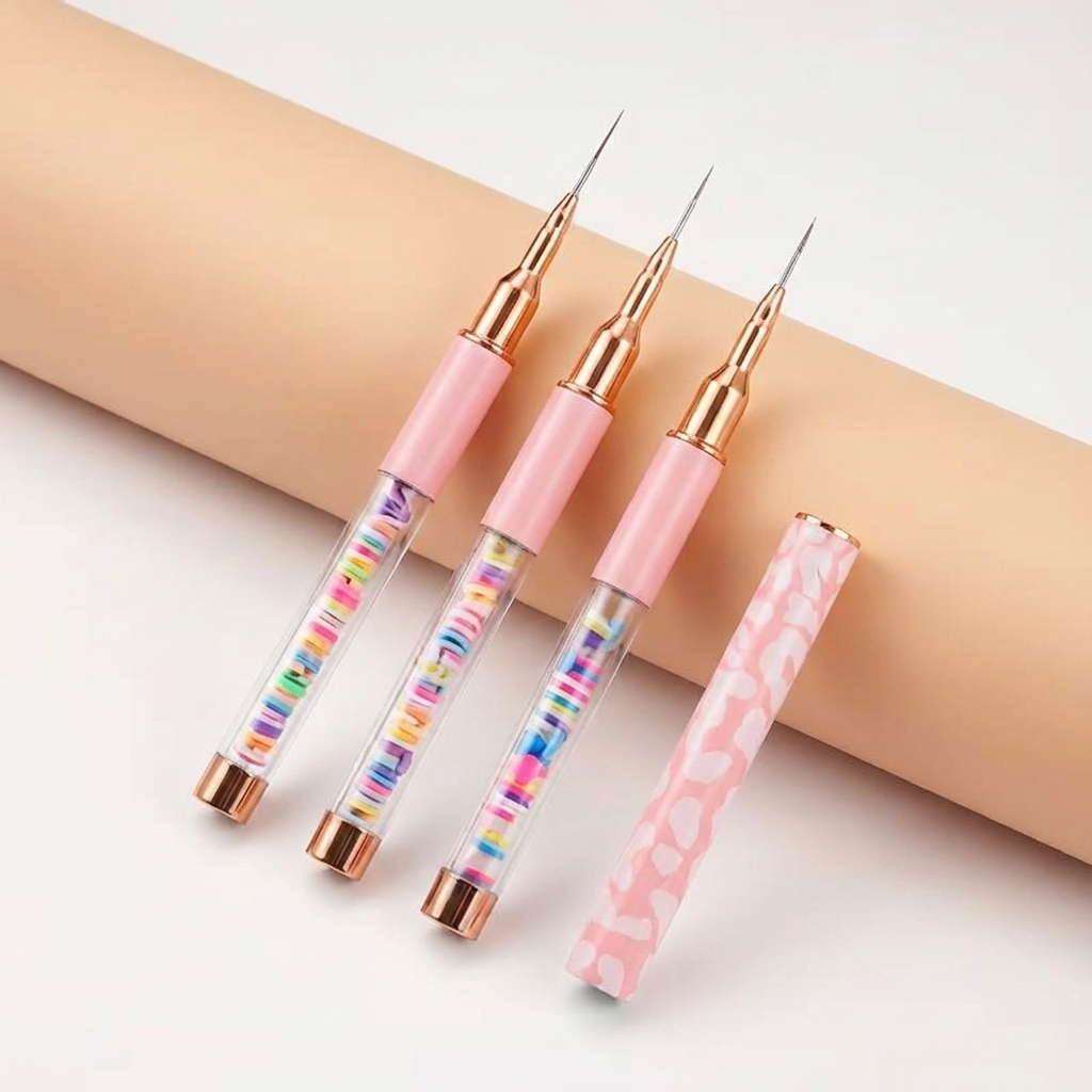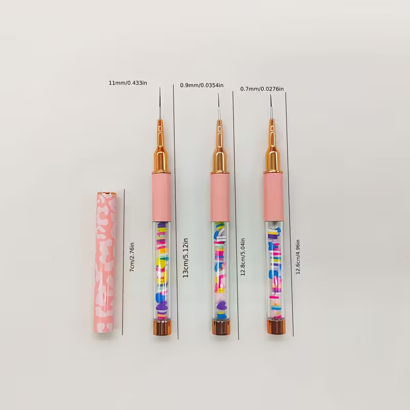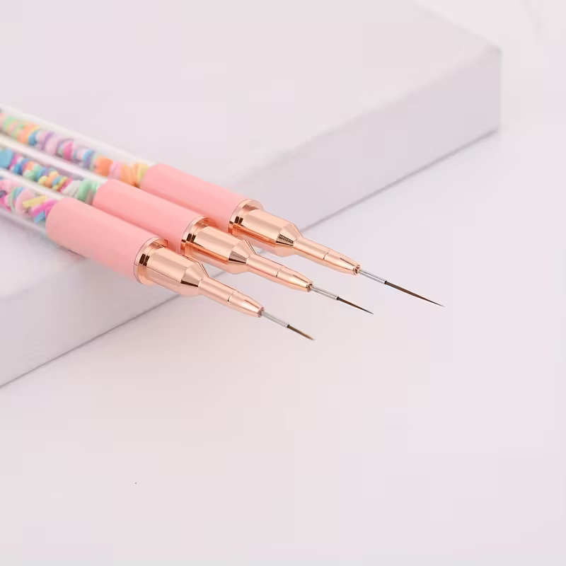 3lü Liner Nail Art Fırça Seti Kapaklı Tırnak Çizim Fırçası Pembe