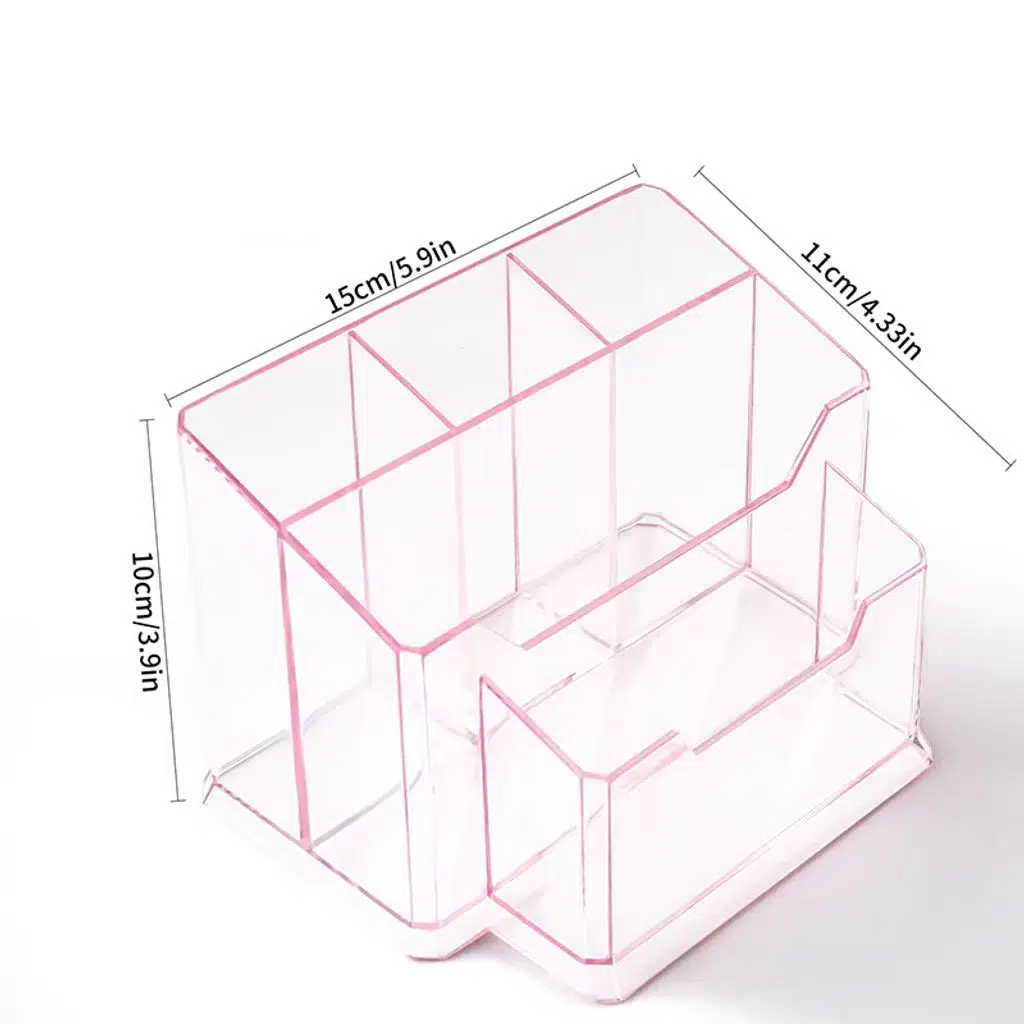 Büyük kapasiteli masaüstü organizer, hem güzellik salonları hem de ev ve ofis kullanımı için tasarlanmış çok amaçlı bir düzenleyicidir. Bölmelerde cilt bakım ürünleri, makyaj malzemeleri, kalem ve fırçalar saklayabilirsiniz. Manikür masasında jel ve kalıcı ojeler, freze başlıkları ve nail art aksesuarlarını; ofis ya da çalışma masasındaysa kalem, not kâğıdı ve küçük ofis gereçlerini tek noktada toparlayarak hem şık hem pratik bir masa üstü düzeni sağlar.