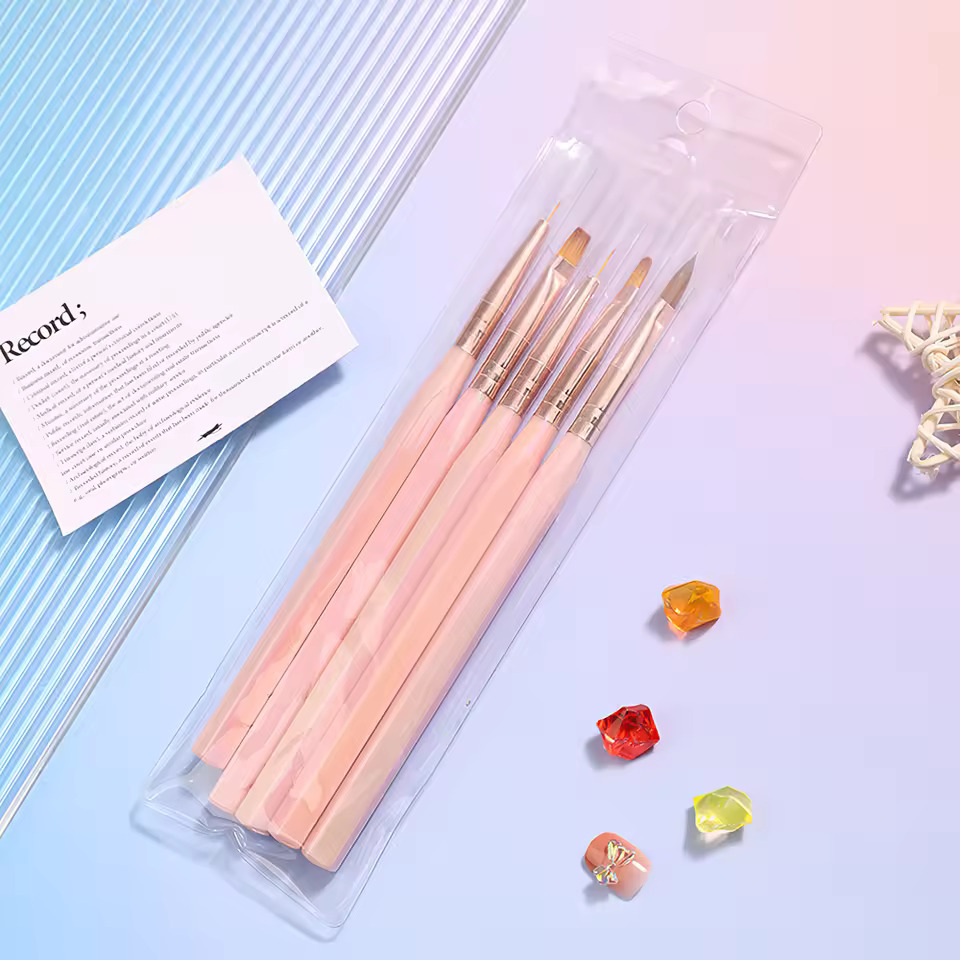 5li Liner ve Jel Nail Art Fırça Seti Tırnak Fırça Seti Pembe