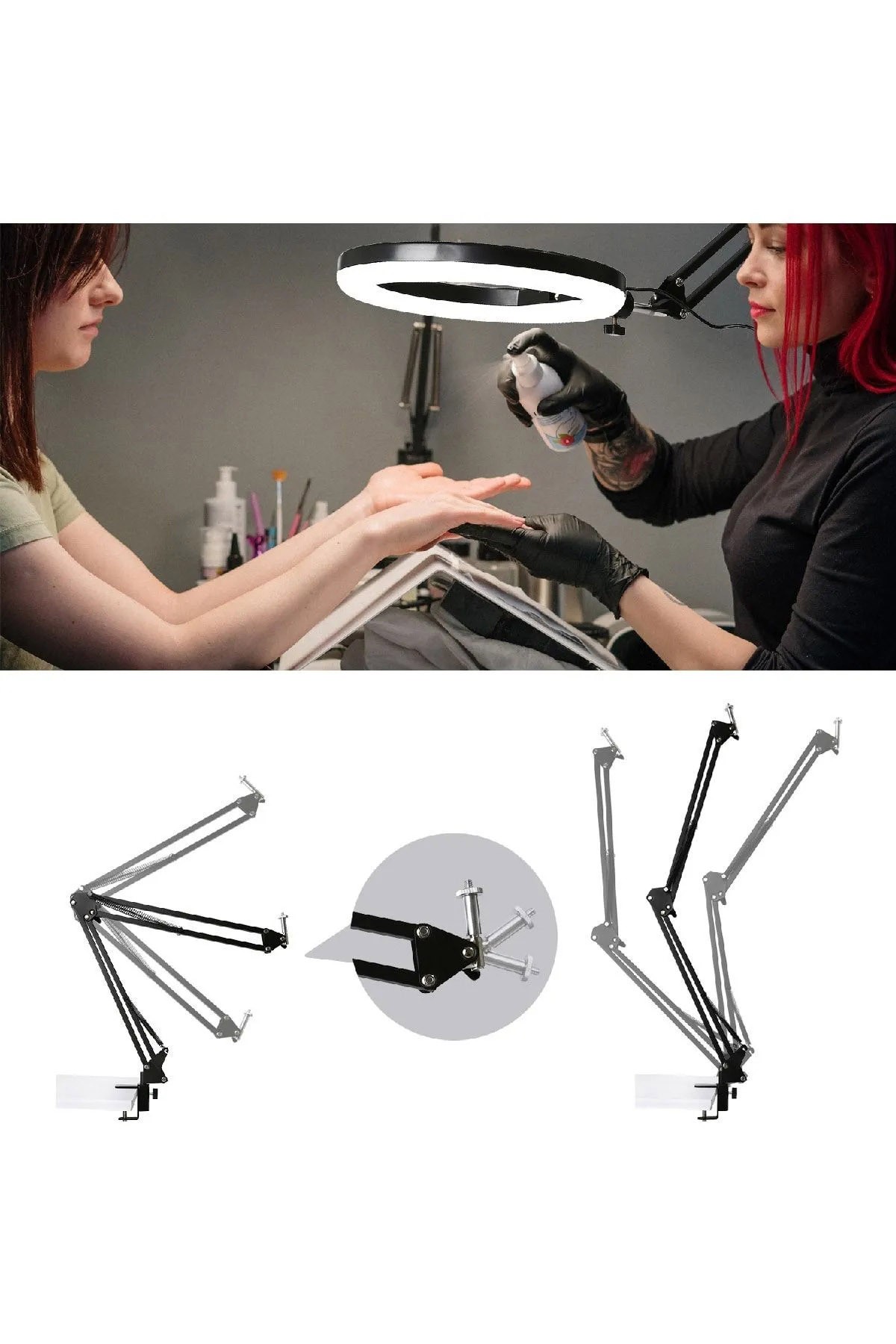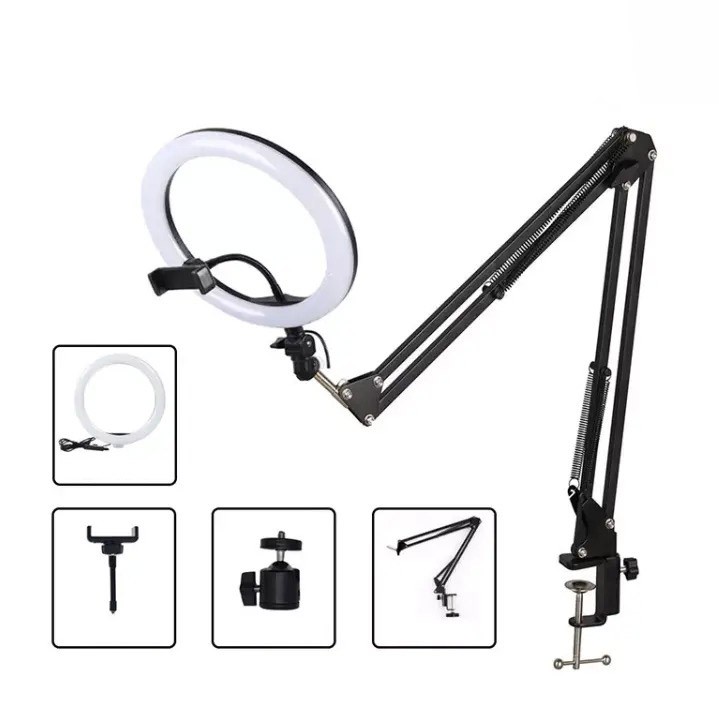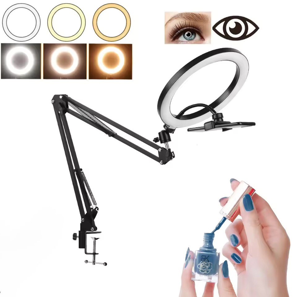 Akrobat Hareketli 3 Renkli Led Halka TikTok,YouTube.Instagram,Selfie Make Up Eğitim Çekim Lambası Telefon Tutuculu Led Halka Masa Lambası Mengeneli