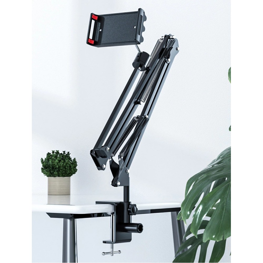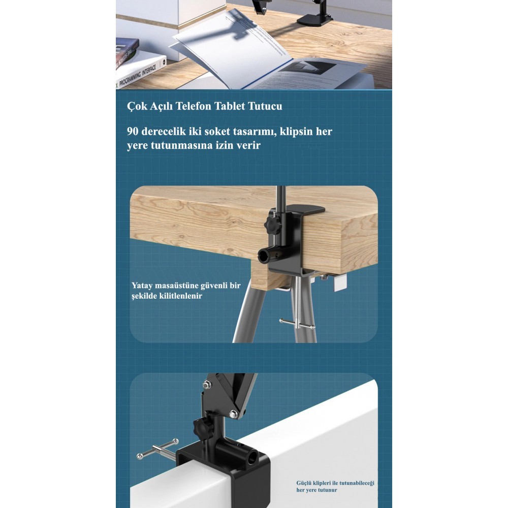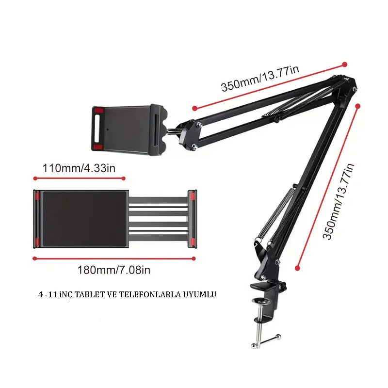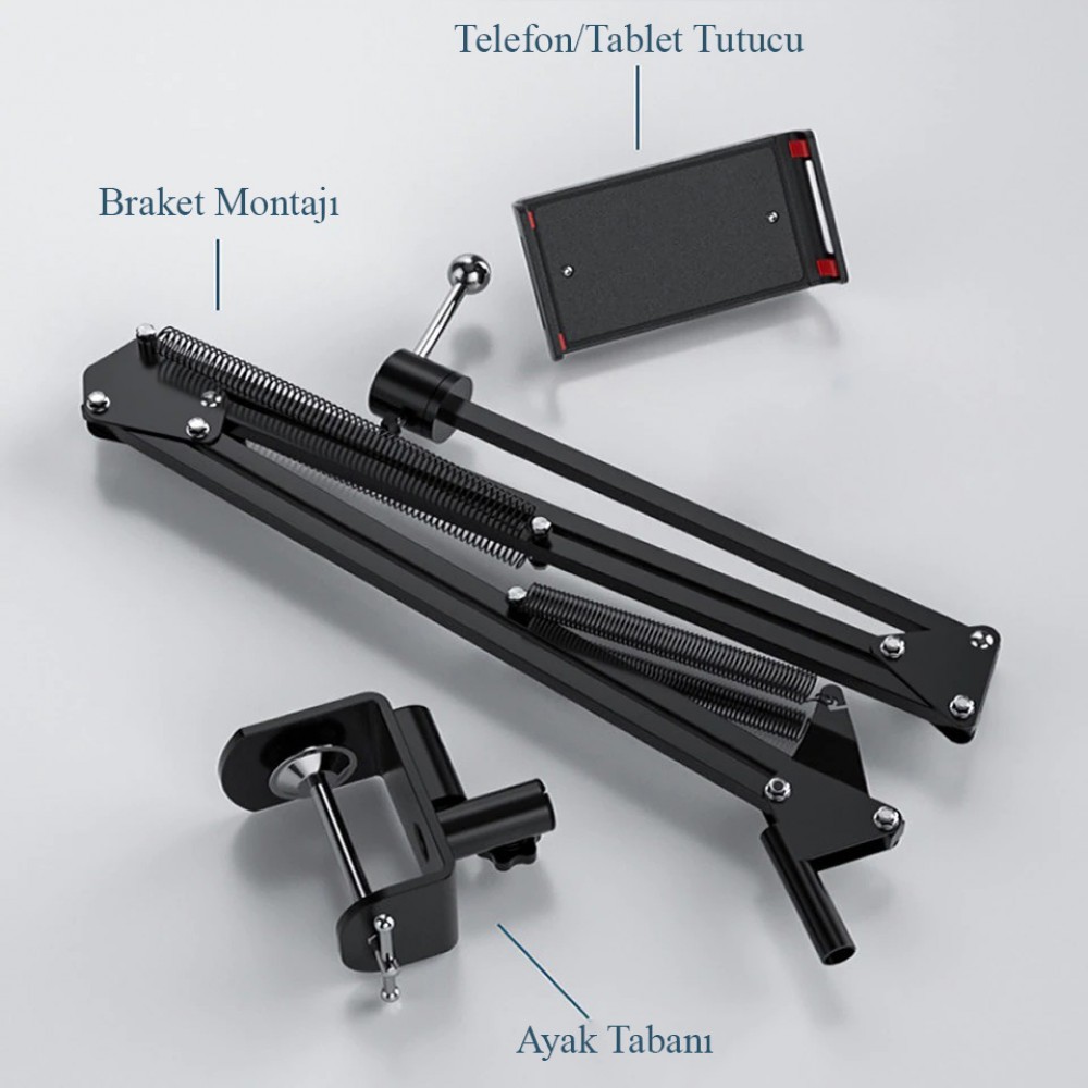 Akrobat Hareketli Uzun Kol Telefon - IPAD - Tablet Tutucu Metal 360 Derece Çok Açılı Ayar 4-11 inç Mengeneli