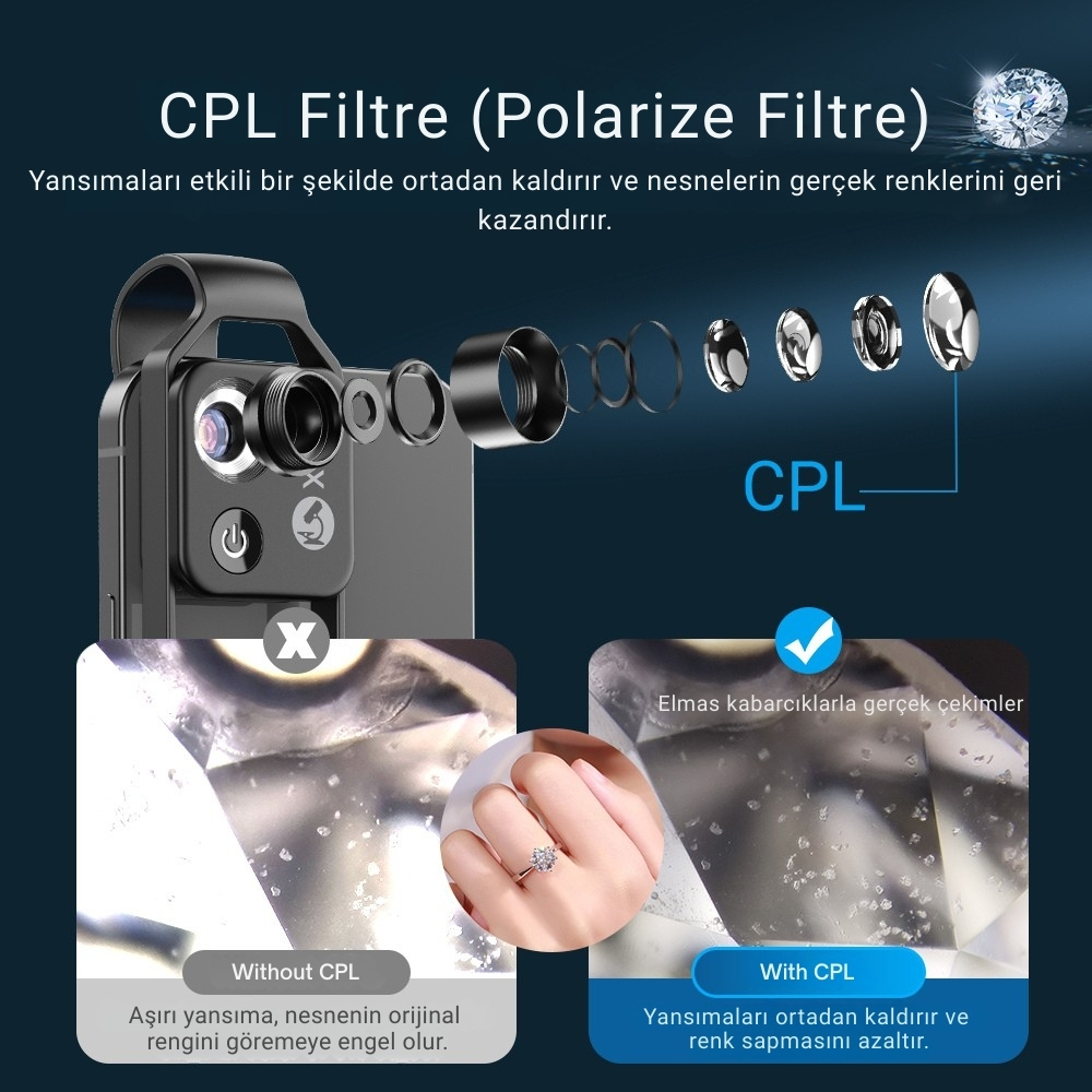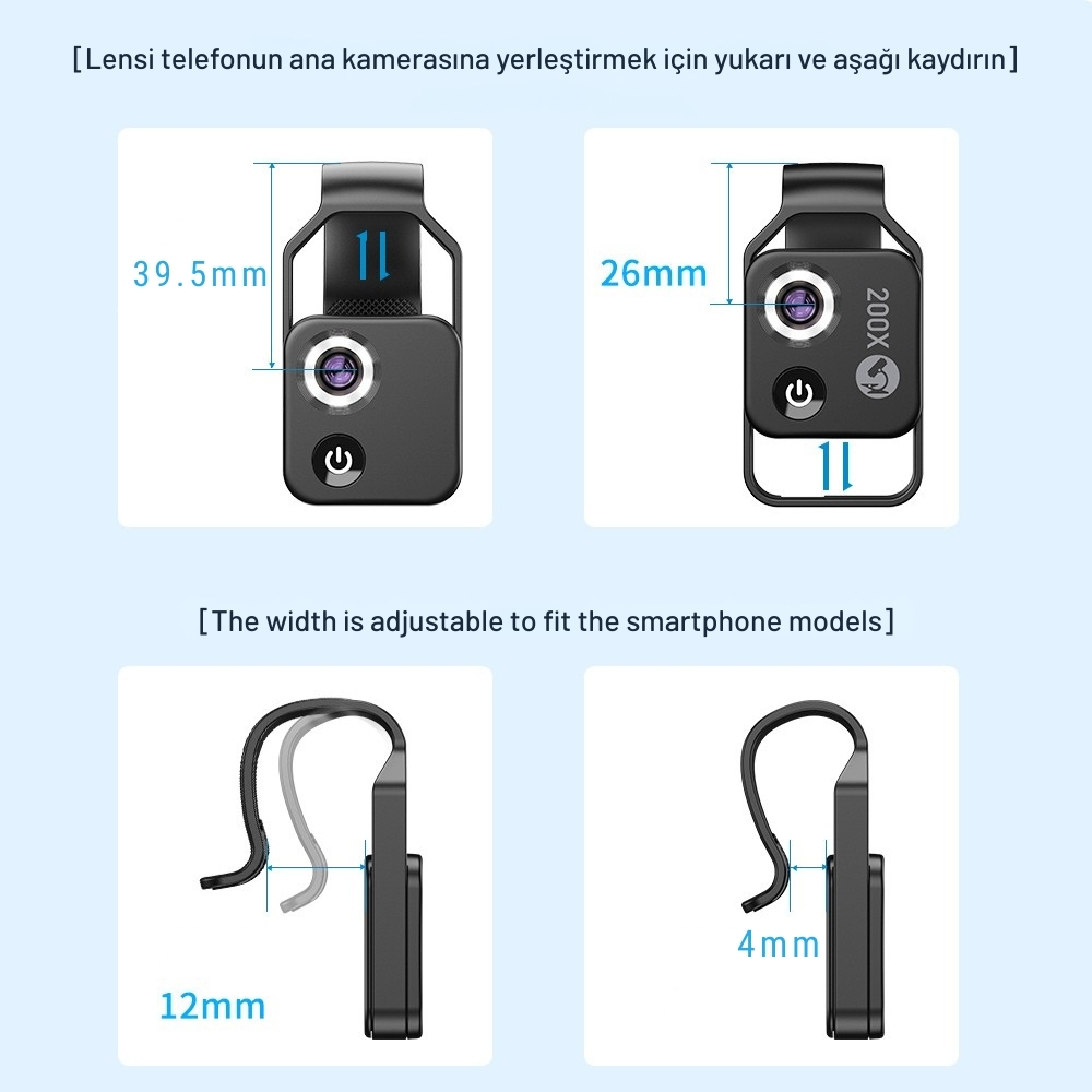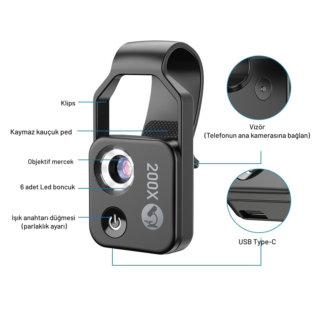 Bu lens, meraklı kullanıcılar, öğrenciler, hobiciler ve ürün detayını göstermek isteyen profesyoneller için ideal bir mobil mikroskop çözümüdür.
