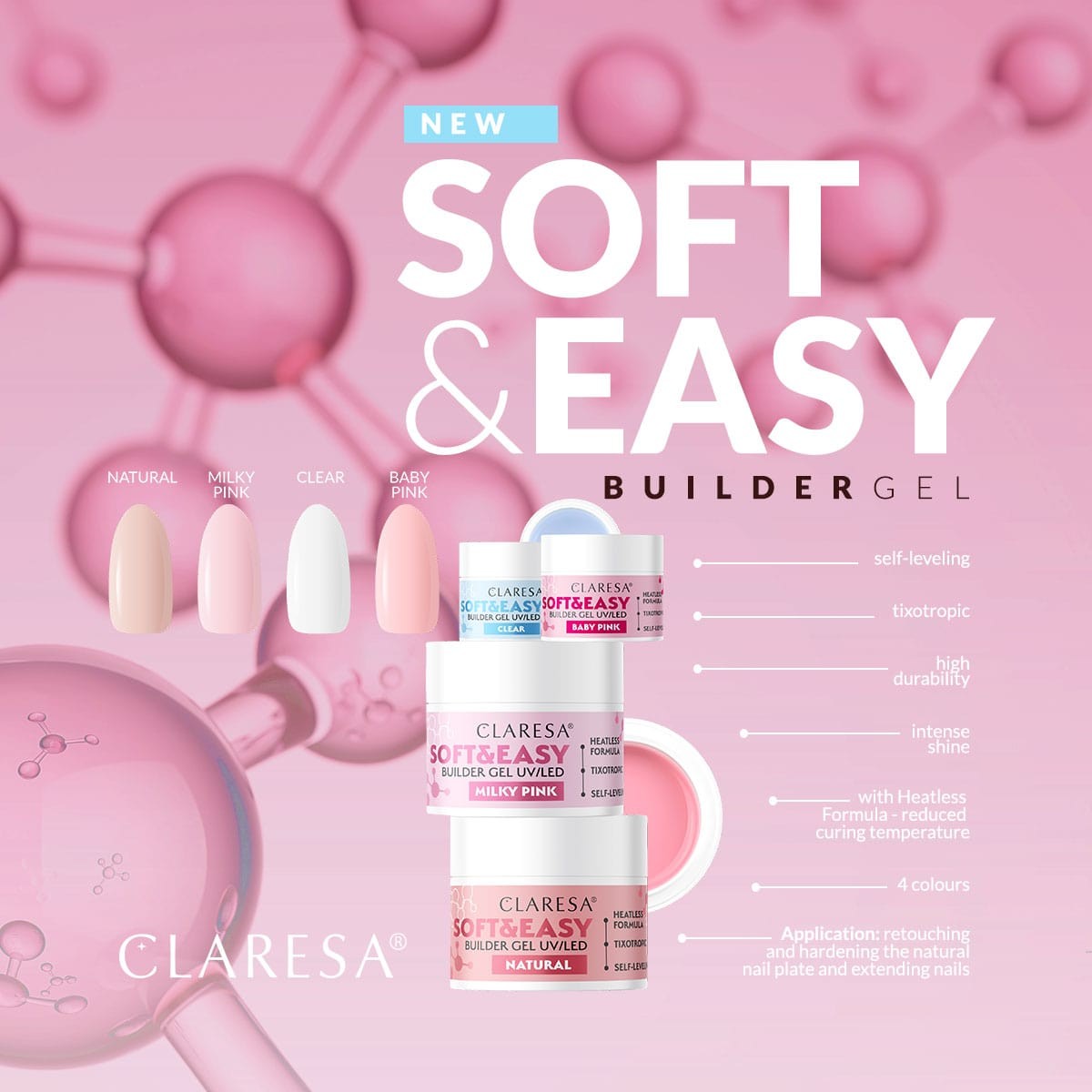 CLARESA Soft&Easy Builder Jel Natural - Nude Pembe 45gr