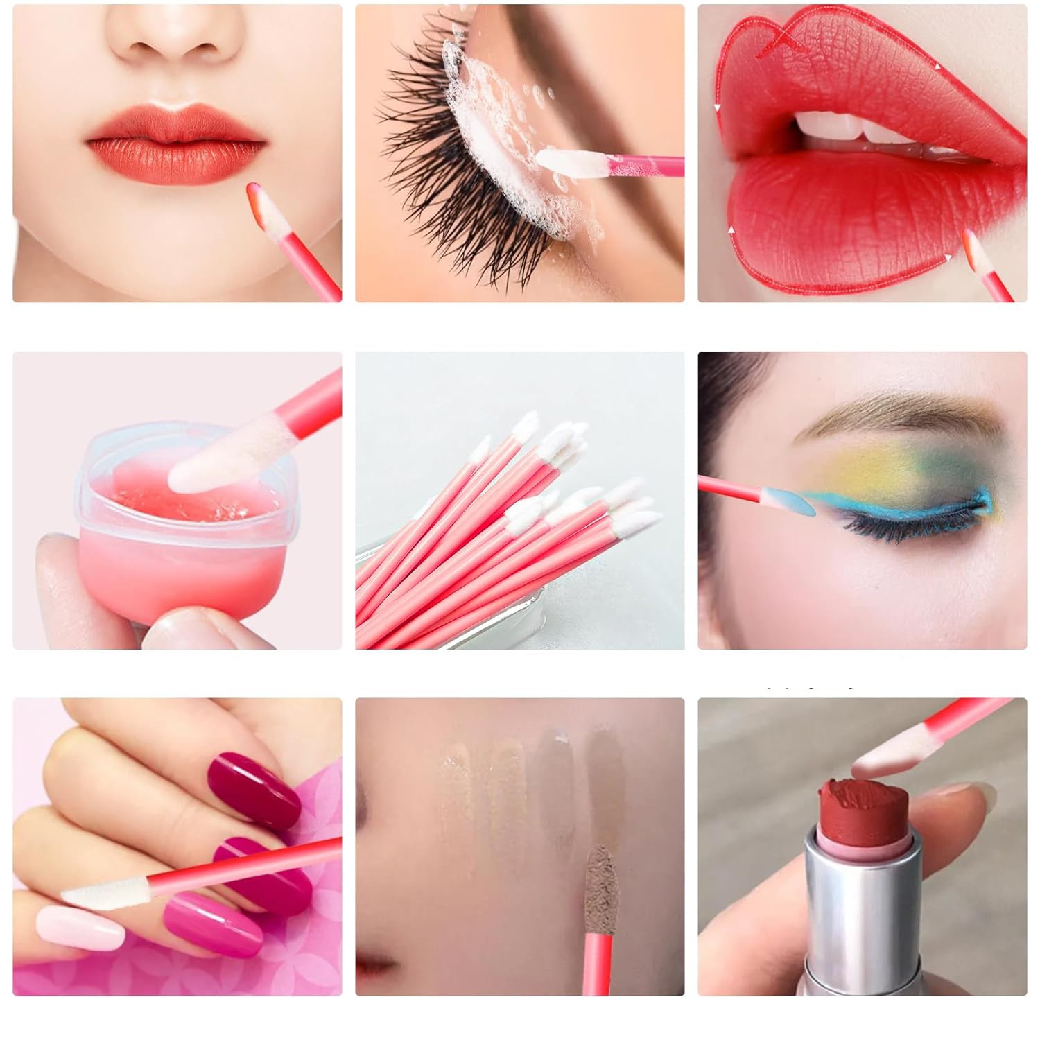 Tek kullanımlık dudak fırçaları, yumuşak ve cilt dostu olan yüksek kaliteli floklu malzemeden yapılmıştır, hassas dudak cildini tahriş etmez ve makyajınızın her seferinde pürüzsüz ve doğal bir şekilde sürülmesini sağlar.