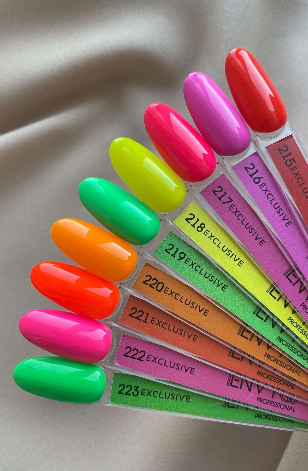 Envy, yüksek kaliteli kalıcı ojeleri uygun bir fiyata sundukları ve ayrıca her zevke uygun geniş bir renk ve ton yelpazesine sahip oldukları için popüler ve ustaların sevgisini kazanan yüksek kaliteli ve yüksek pigmentli ojelerdir. Kullanım durumuna göre 2-3 haftaya kadar dayanıklıdır.