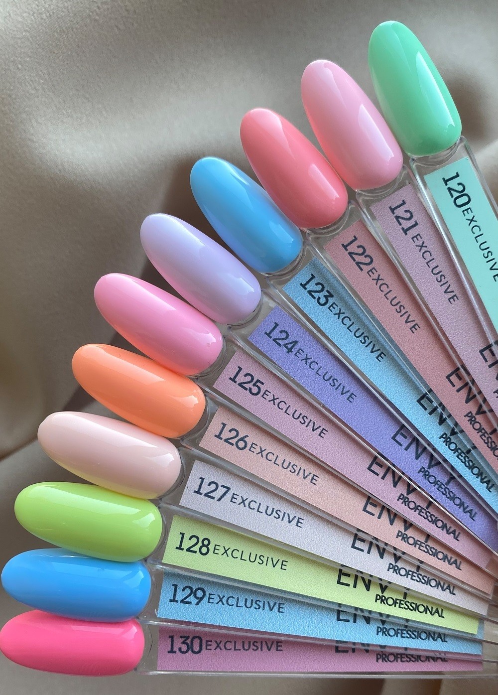 Envy, yüksek kaliteli kalıcı ojeleri uygun bir fiyata sundukları ve ayrıca her zevke uygun geniş bir renk ve ton yelpazesine sahip oldukları için popüler ve ustaların sevgisini kazanan yüksek kaliteli ve yüksek pigmentli ojelerdir. Kullanım durumuna göre 2-3 haftaya kadar dayanıklıdır.