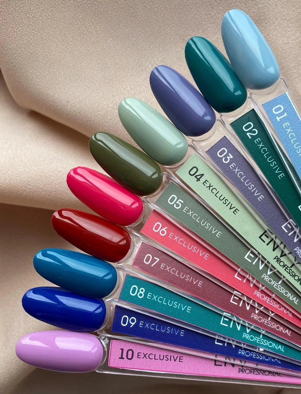 Envy, yüksek kaliteli kalıcı ojeleri uygun bir fiyata sundukları ve ayrıca her zevke uygun geniş bir renk ve ton yelpazesine sahip oldukları için popüler ve ustaların sevgisini kazanan yüksek kaliteli ve yüksek pigmentli ojelerdir. Kullanım durumuna göre 2-3 haftaya kadar dayanıklıdır.