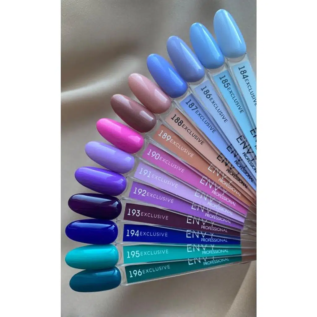 Envy, yüksek kaliteli kalıcı ojeleri uygun bir fiyata sundukları ve ayrıca her zevke uygun geniş bir renk ve ton yelpazesine sahip oldukları için popüler ve ustaların sevgisini kazanan yüksek kaliteli ve yüksek pigmentli ojelerdir. Kullanım durumuna göre 2-3 haftaya kadar dayanıklıdır.