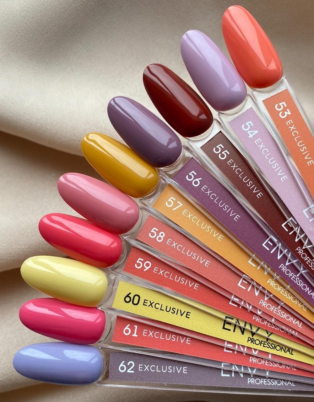 Envy, yüksek kaliteli kalıcı ojeleri uygun bir fiyata sundukları ve ayrıca her zevke uygun geniş bir renk ve ton yelpazesine sahip oldukları için popüler ve ustaların sevgisini kazanan yüksek kaliteli ve yüksek pigmentli ojelerdir. Kullanım durumuna göre 2-3 haftaya kadar dayanıklıdır.