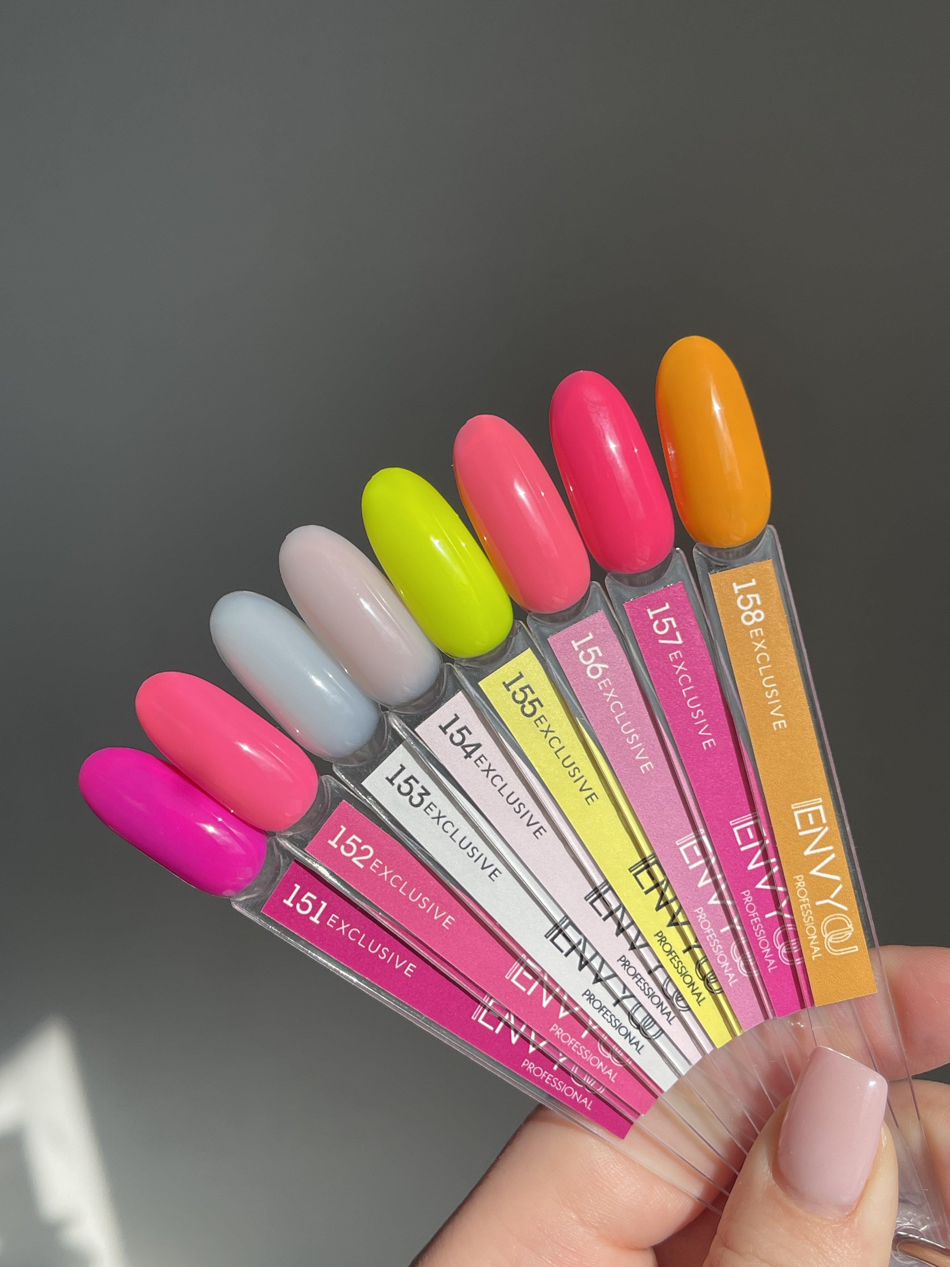 Envy, yüksek kaliteli kalıcı ojeleri uygun bir fiyata sundukları ve ayrıca her zevke uygun geniş bir renk ve ton yelpazesine sahip oldukları için popüler ve ustaların sevgisini kazanan yüksek kaliteli ve yüksek pigmentli ojelerdir. Kullanım durumuna göre 2-3 haftaya kadar dayanıklıdır.