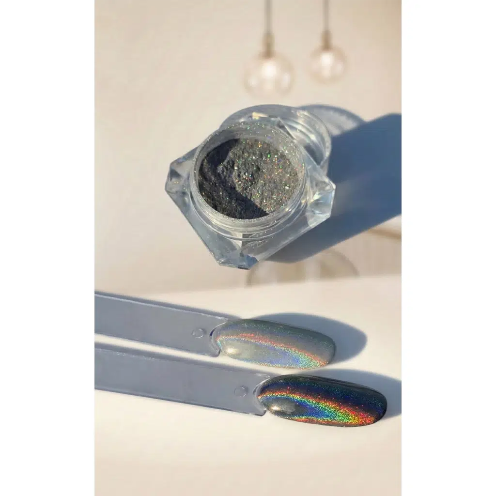 Gümüş Gökkuşağı Tırnak Krom Tozu Aplikatörlü Krom İnci Tozu Holografik Silver WN-101 (0.5gr)