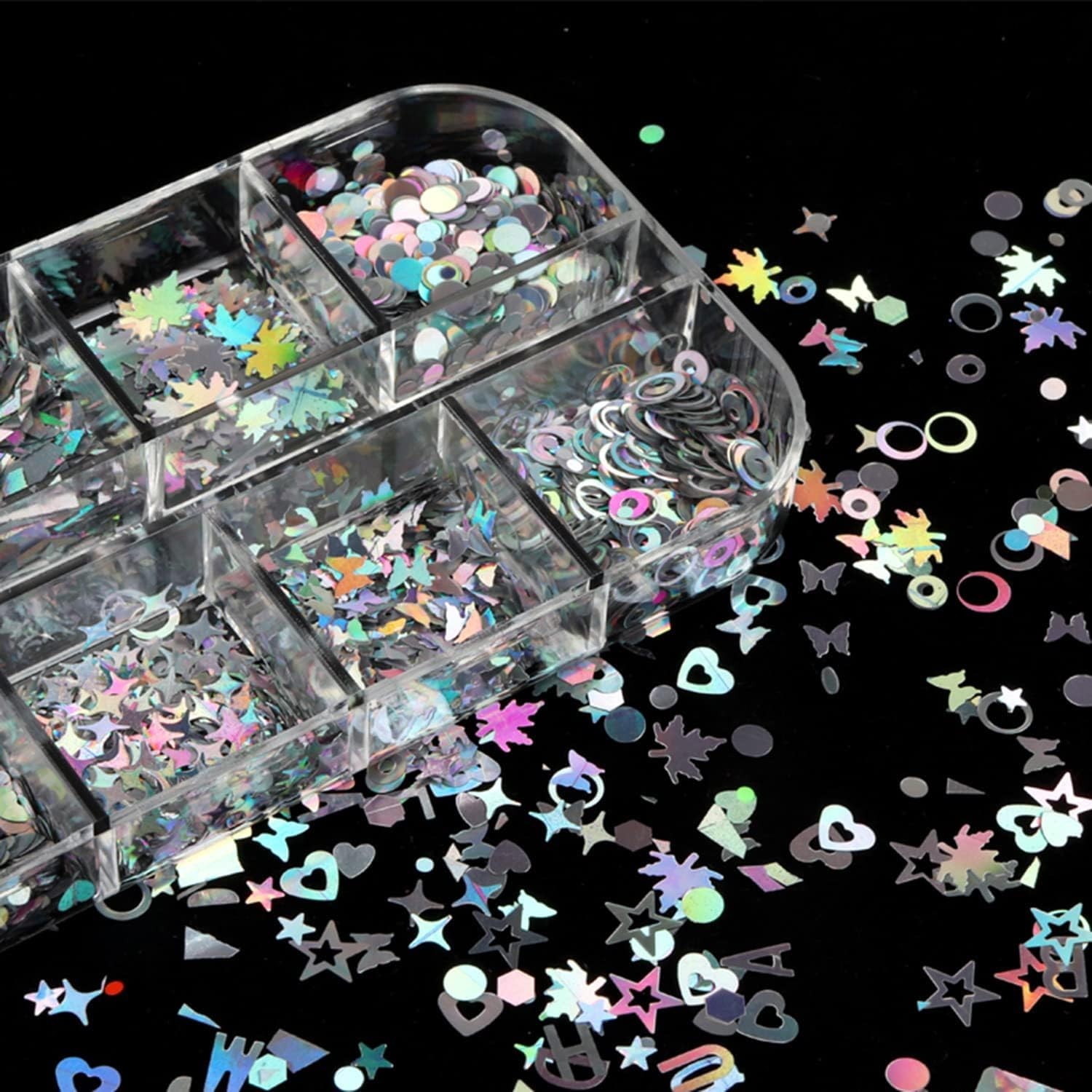 Holografik Gümüş Tırnak Süsleme Folyo Pulları Karışık Dizayn Kelebek Kalp Harfler Yıldızlar Nail Art WNS-001