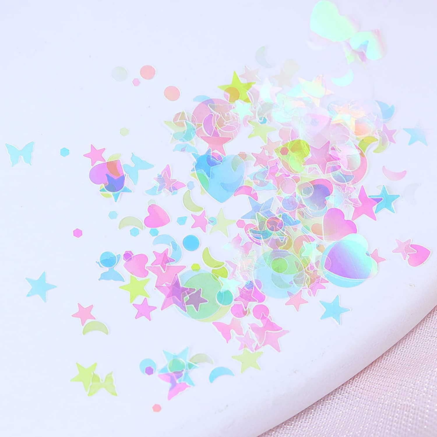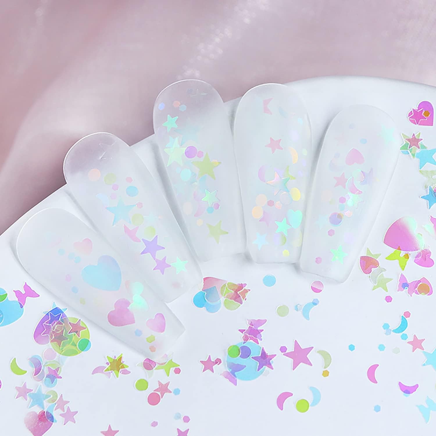 Holografik Parlak Şeffaf Tırnak Süsleme Folyo Pulları Karışık Dizayn Kelebek Kalp Yıldızlar Yarım Ay ve Yuvarlak Pullar Nail Art WNS-001
