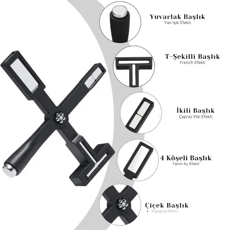 • 5 farklı mıknatıs başlık: T-bar, düz bar, geniş bar, X-şekil ve çiçek desen başlığı