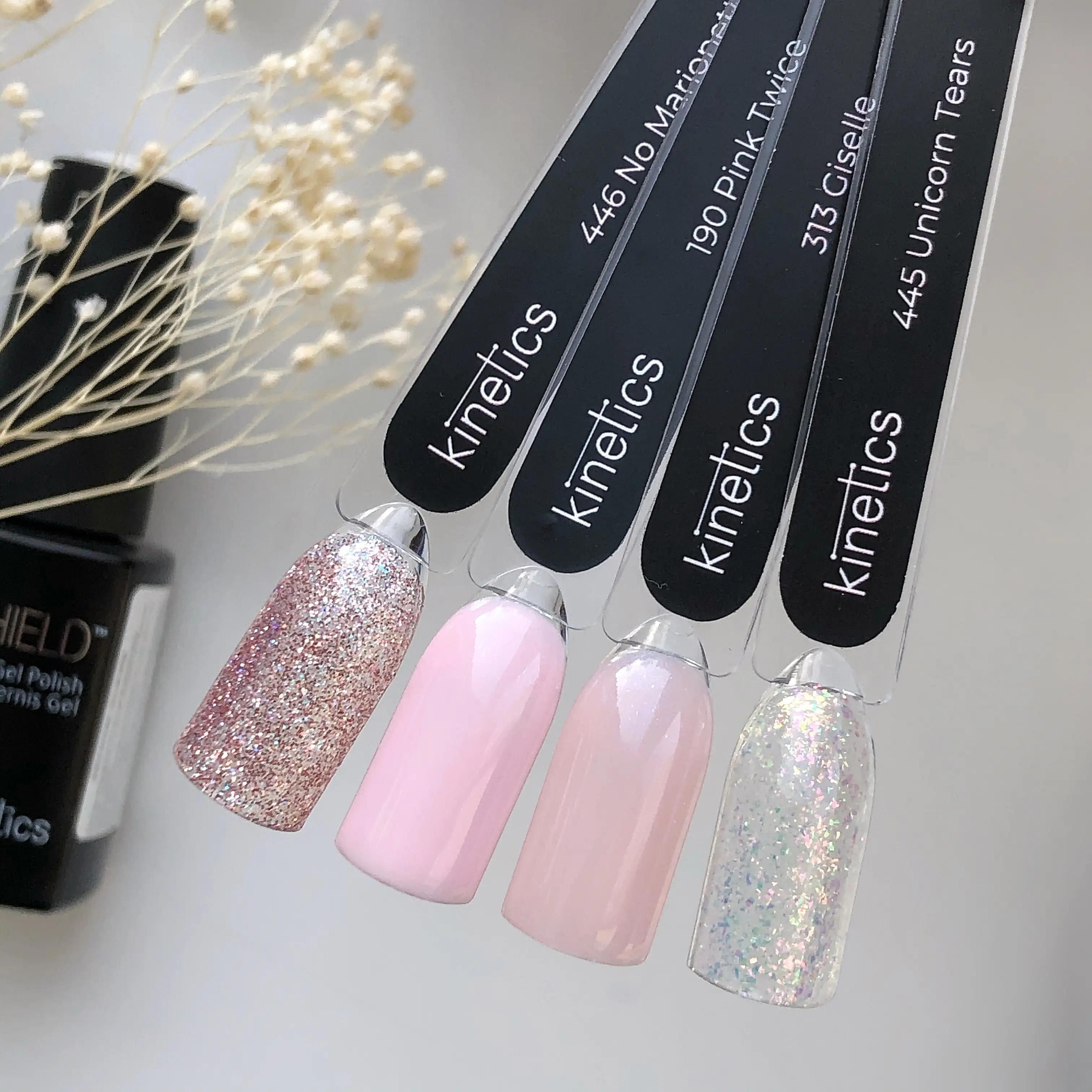 • Kinetics Shield Serisinin geniş renk yelpazesi tasarım ve nail art işlemlerinde harika sonuçlar verir.