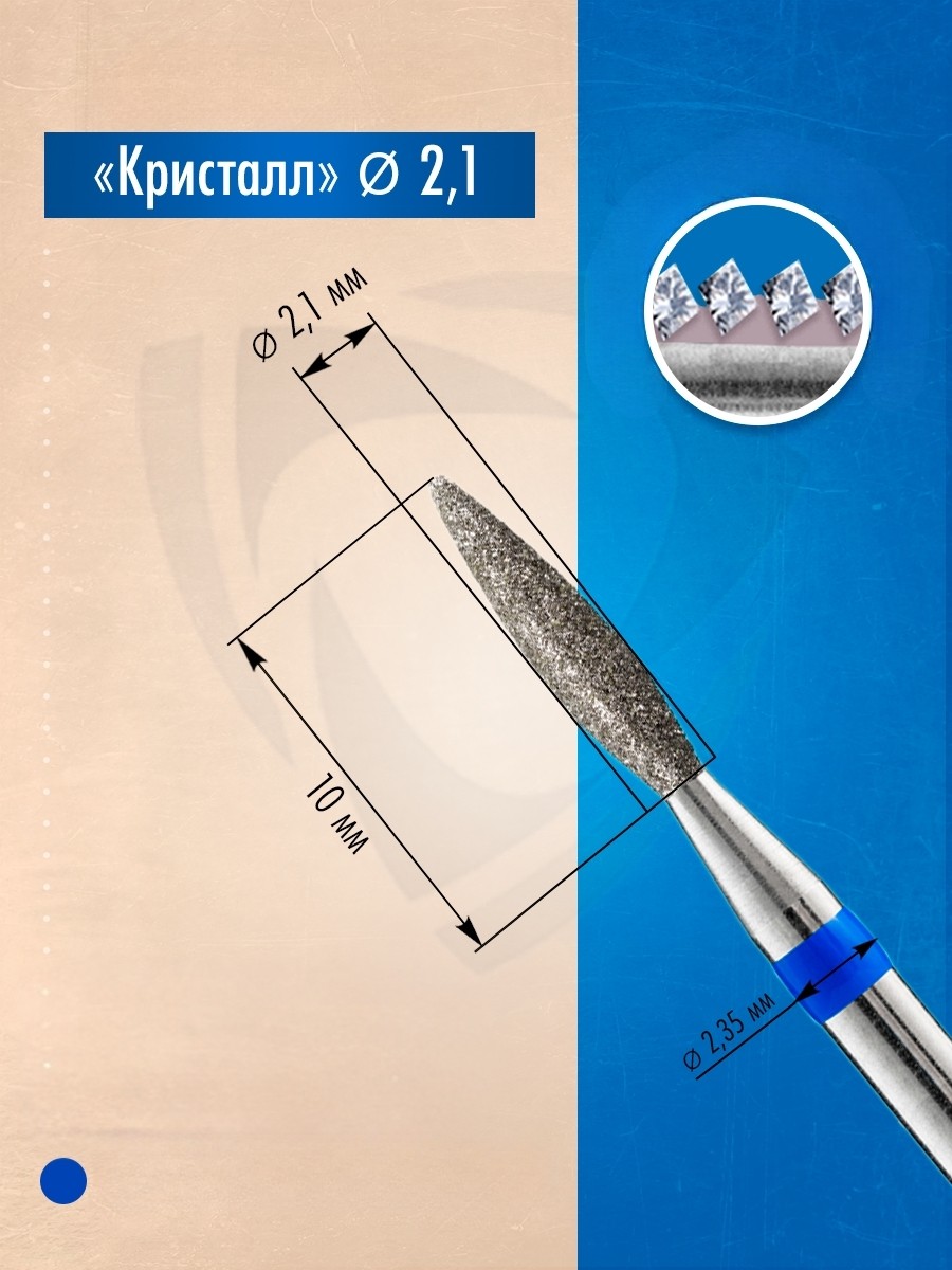 Profesyonel manikür, pedikür ve podoloji uygulamalarında hassas ve kontrollü işlem yapılmasına imkan tanıyan bu elmas kaplı freze ucu, sivri alev formu ve mavi kodlu orta aşındırıcı yüzeyiyle konforlu kullanım sağlar. 100 % kalibre edilmiş elmas kristallerle kaplanmıştır ve paslanmaz çelik gövdeye sahiptir.