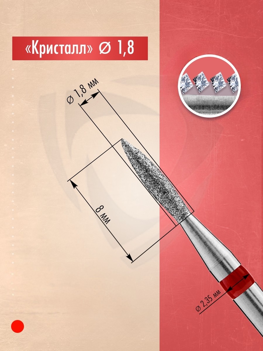 Profesyonel manikür, pedikür ve podoloji uygulamalarında hassas ve kontrollü işlem yapılmasına imkan tanıyan bu elmas kaplı freze ucu, sivri alev formu ve kırmızı kodlu yumuşak aşındırıcı yüzeyiyle konforlu kullanım sağlar. 100 % kalibre edilmiş elmas kristallerle kaplanmıştır ve paslanmaz çelik gövdeye sahiptir.