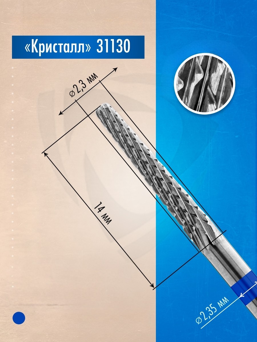Profesyonel manikür, pedikür ve podoloji işlemlerine yönelik olarak geliştirilmiş Kristall 31130 freze ucu, konik yapısı ve mavi şeritli orta kesimiyle hassas ve kontrollü bir kullanım deneyimi sunar.