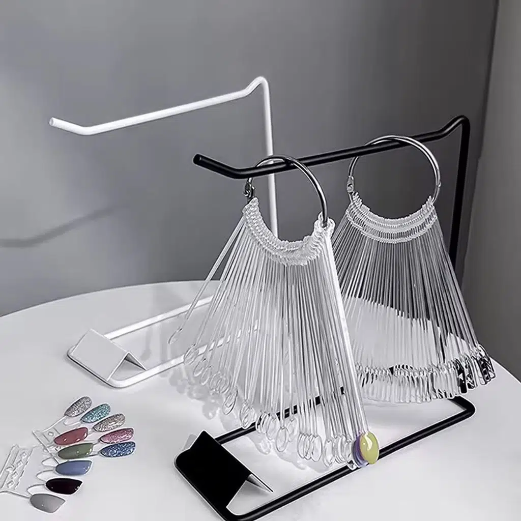 Tırnak renk kartelası standı, geniş renk koleksiyonunu düzenli şekilde sergilemek isteyen profesyoneller için pratik bir sunum çözümüdür.