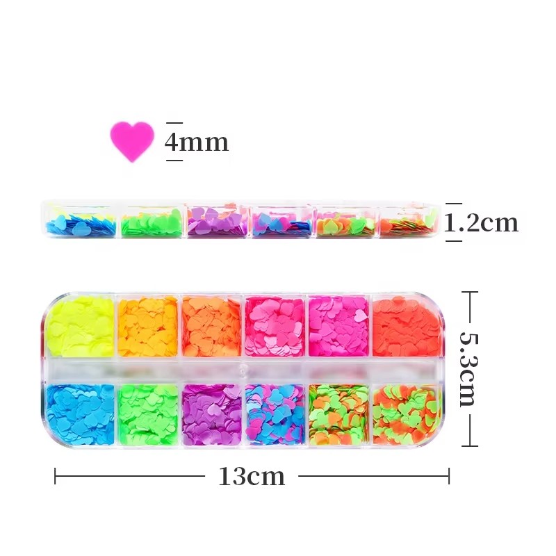 Neon Renkli Kalpler Tırnak Süsleme Folyo Pulları Karışık Renkler Nail Art WNS-009