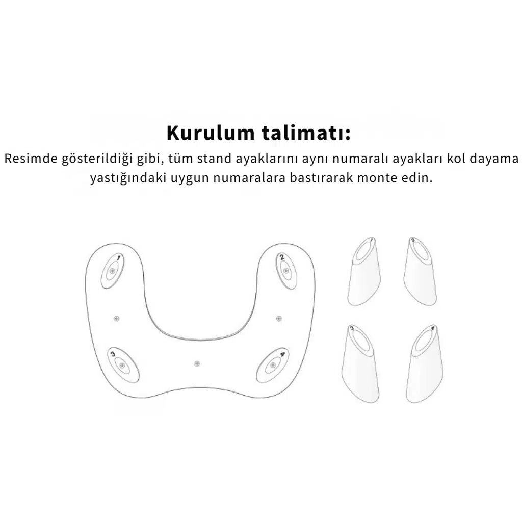 Tüm stand ayaklarını aynı numaralı ayakları kol dayama yastığındaki uygun numaralara bastırarak monte edin.