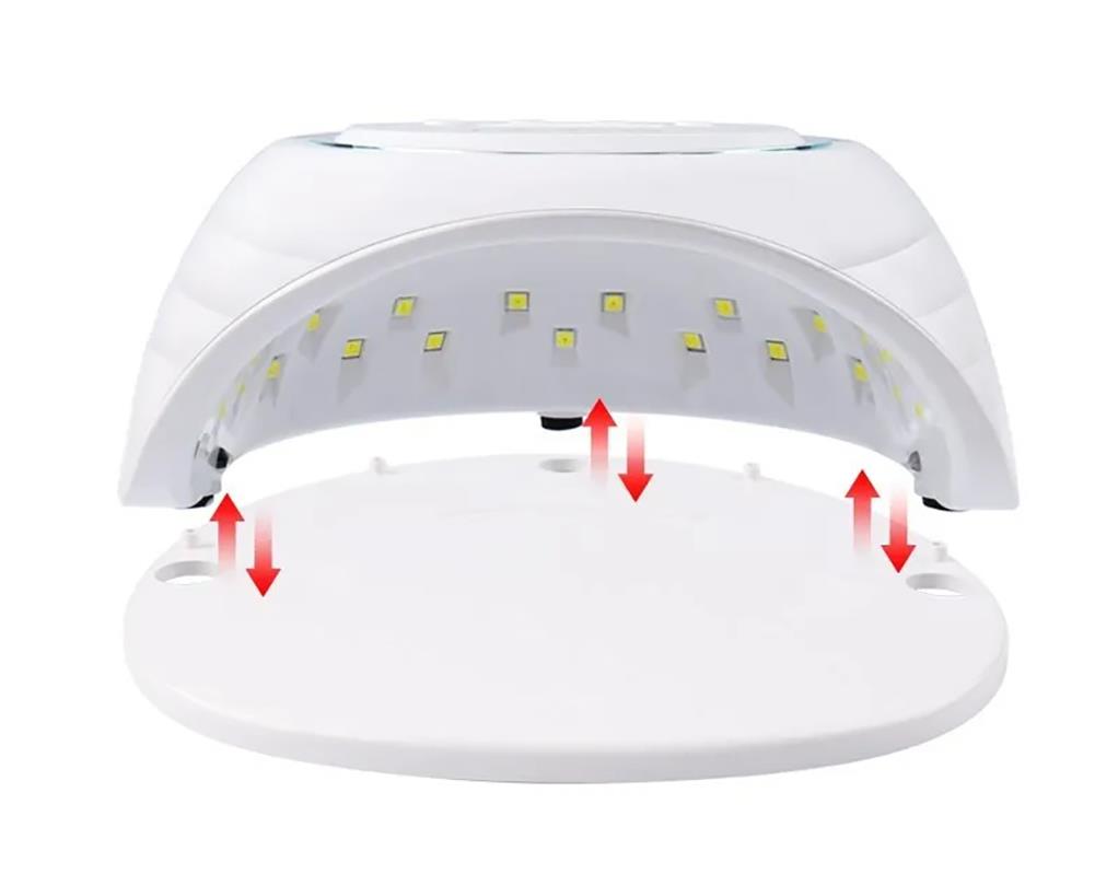 Hem manikür hem de pedikür işlemleri için uygun olan lambanın iç odası geniştir. Üst panelde dört zamanlayıcı düğmesi ve bir ekran bulunur.