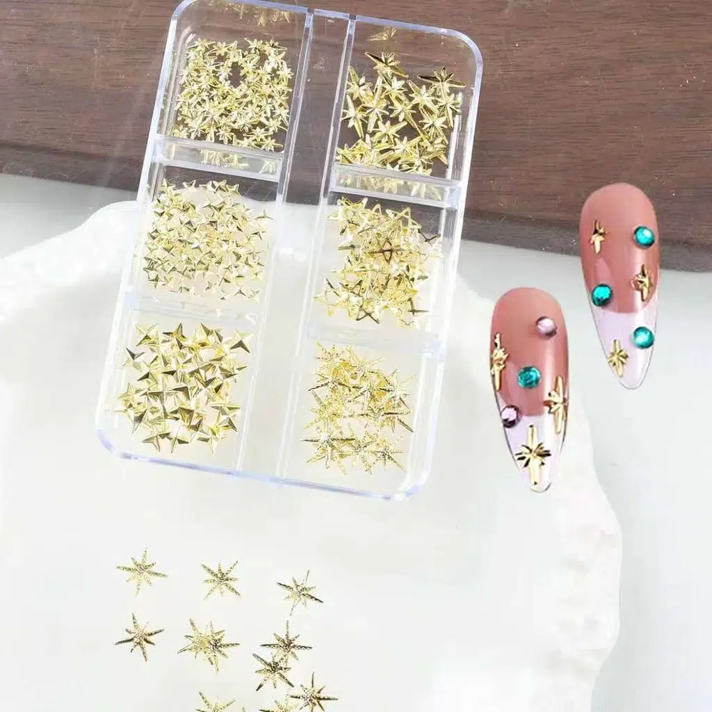 Yıldız ve Kutup Yıldızı Dizayn 6 Grit Metal Tırnak Süsleme Charm Gold Nail Art Charm Taşları WN-528